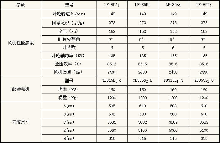 LF-85風機性能參數(shù)一覽表