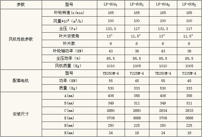 LF-60風(fēng)機(jī)風(fēng)機(jī)性能參數(shù)一覽表