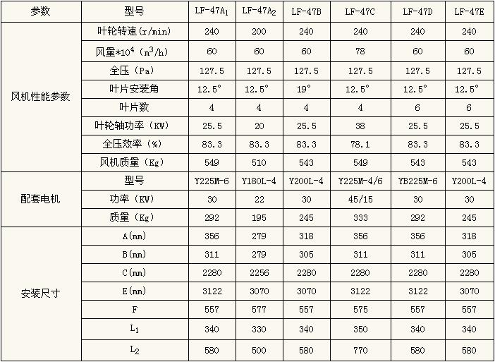 LF-47風(fēng)機性能參數(shù)一覽表